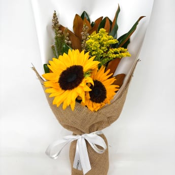 Embrace the enduring elegance of today’s Daily Bouquet — a captivating fusion of Sunflowers, Thryptomene, Golden Rod, and Magnolia at their most radiant. Each bloom comes together in beautiful harmony, unveiling a vibrant tapestry of golden hues, delicate fragrance, and effortless grace. Wrapped in crisp white paper, complemented by rustic hessian, and tied with a timeless white satin ribbon, this bouquet radiates warmth and devotion — a sincere celebration of love, happiness, and the cherished connections that make life flourish. ❤️🌸✨